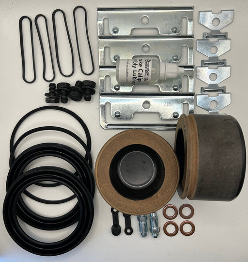 Automotive Brake SolutionsOriginal price $69.00 - Original price $69.00Original price$69.00$69.00 - $69.00Current price $69.00| /Low stockIncludes: 2 phenolic pistons 2 dust boots 2 piston seals 4 pad retainer clips 4 anti-rattle clips 4 damper bands 2 bleed screws 2 bleed caps 4 copp...